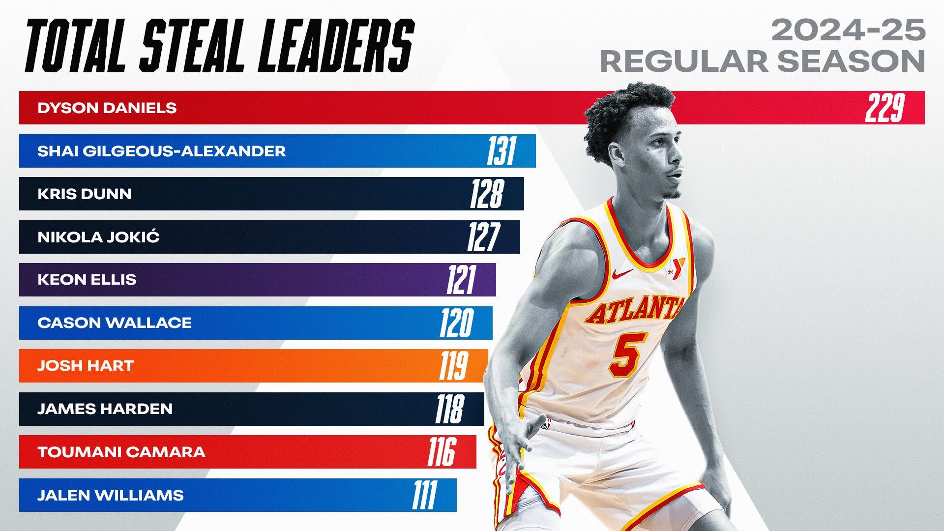 다이슨 다니엘스 : 229 Shai Gilgeous-Alexander : 131 Kris Dunn : 128 Nikola Jokić : 127 Keon Ellis : 121