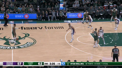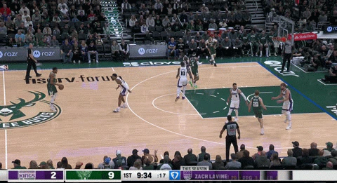 벅스가 새크라멘토가 그린에 배치한 Zach LaVine을 활용하는 게임 초반 점유를 확인하세요. 두 수비수 모두 안테토쿤포를 따르고 있는데, 안테토쿤포의 패스(비전뿐만 아니라 정확성도)가 올 시즌 한 단계 더 발전했다.