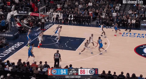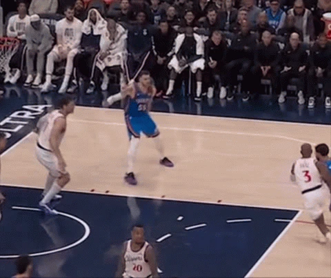 화요일 밤, 오클라호마 시티 썬더가 두 자릿수 상승을 기록하며 그는 자신의 가방을 샅샅이 뒤졌습니다. Ajay Mitchell은 골대로 차를 몰고 가다가 7피트짜리 공을 찼고, 그는 그의 팀 동료인 Alex Caruso가 베이스라인에서 자신의 뒤를 자르는 것을 발견했습니다. 한 순간도 놓치지 않고 하텐슈타인은 코너 3을 위해 카루소에게 다리 사이로 터치 패스를 날렸습니다.