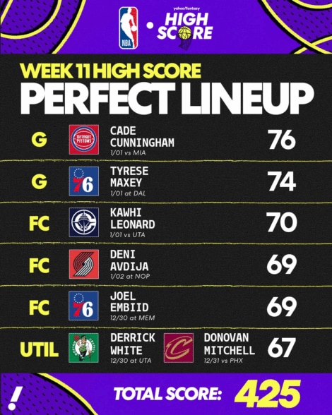 Yahoo Fantasy High Score Week 11 완벽한 라인업.