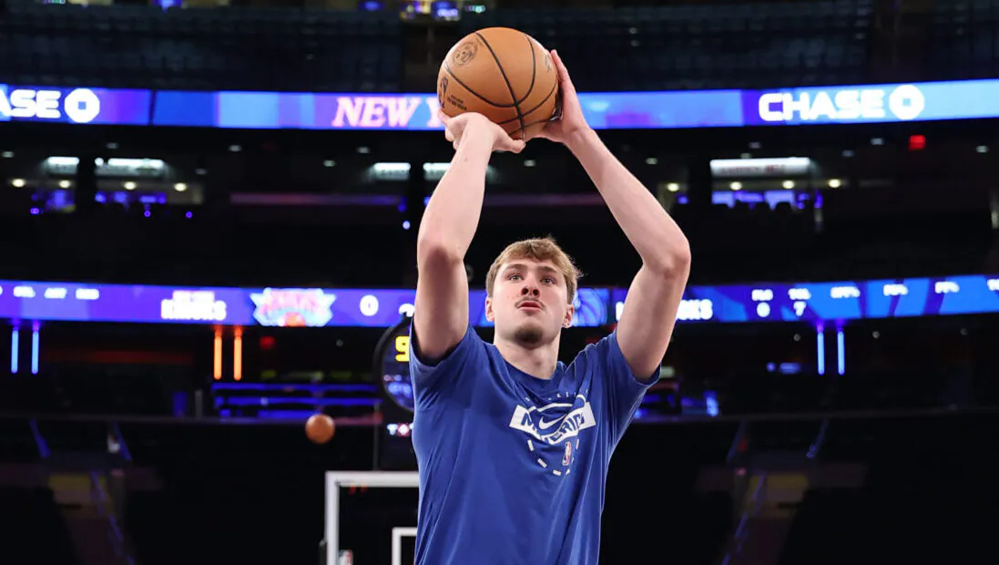 쿠퍼 플래그(Cooper Flagg)가 매디슨 스퀘어 가든(Madison Square Garden)에서 열리는 닉스와의 월요일 경기를 앞두고 몸을 풀고 있습니다.