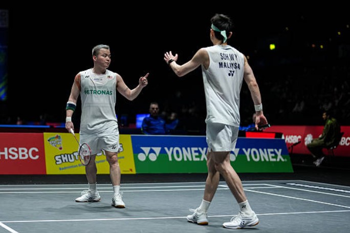 애런 치아(Aaron Chia)와 소우이익(Soh Wooi Yik)이 버밍엄에서 열린 2026년 전잉글랜드 배드민턴 선수권 대회에서 경기를 펼치고 있습니다. (사진=AFP) 애런 치아(Aaron Chia)와 소우이익(Soh Wooi Yik)이 버밍엄에서 열린 2026년 전잉글랜드 배드민턴 선수권 대회에서 경기를 펼치고 있습니다. (사진=AFP)